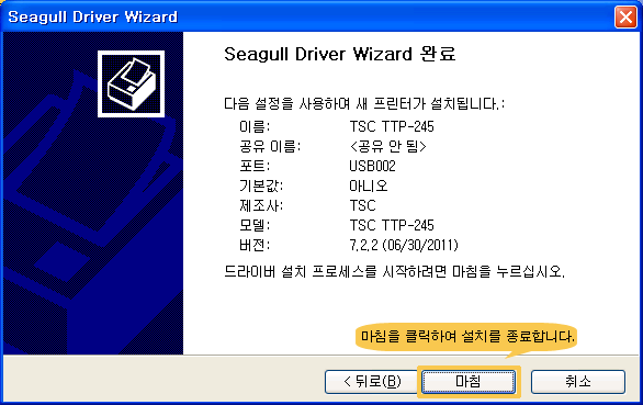 8. ¸¶Ä§ ¹öưÀ» Ŭ¸¯ÇÏ¿© ÇÁ¸°ÅÍ ¼³Ä¡¸¦ Á¾·áÇÕ´Ï´Ù.